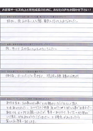 取付日当日、お仕事以外の事でとても親切にアドバイスをして頂き、とても助かりました。