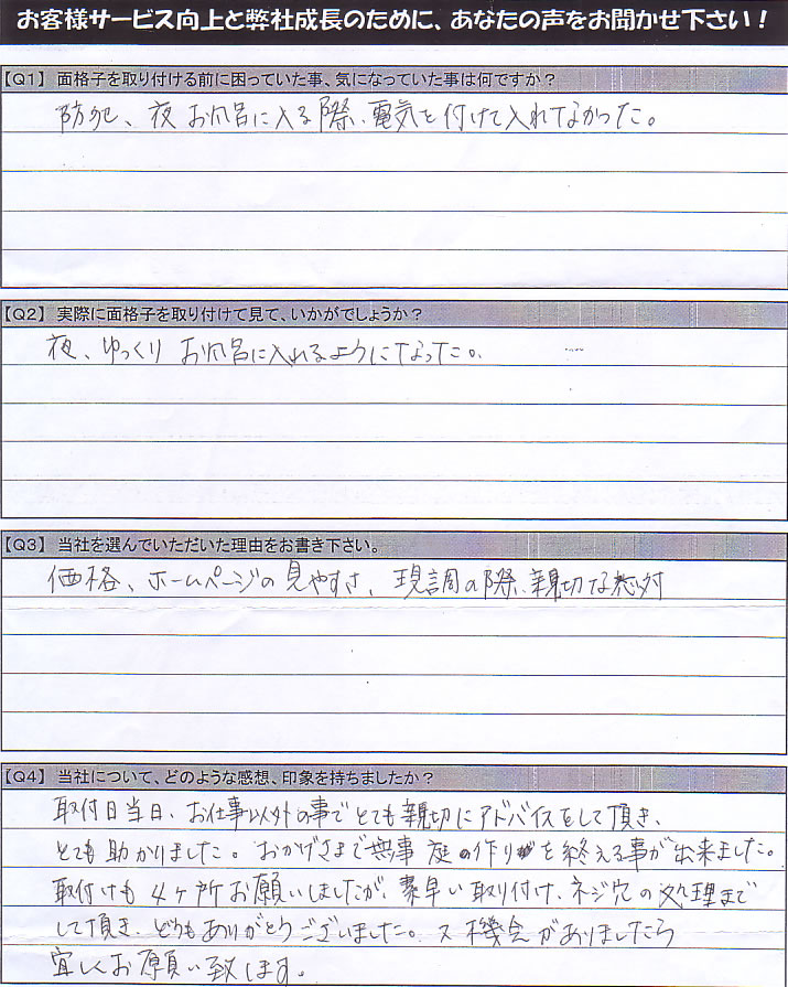 窓に面格子が付いていない為心配です。 防犯用の面格子を取付たいと思いインターネットで探したそうです。
